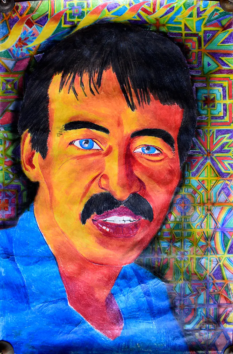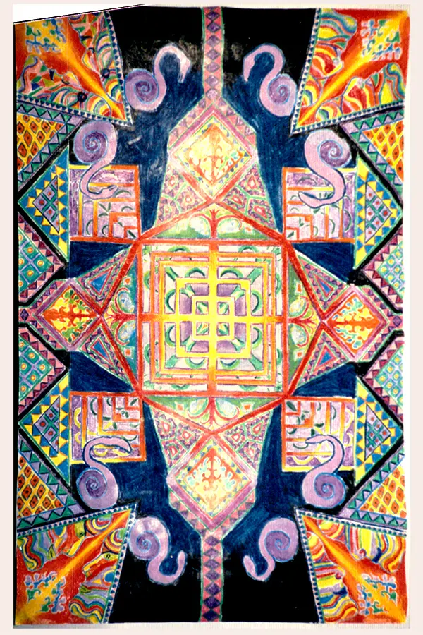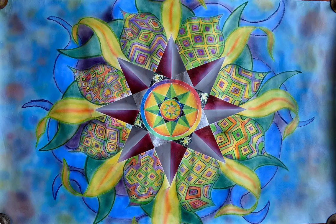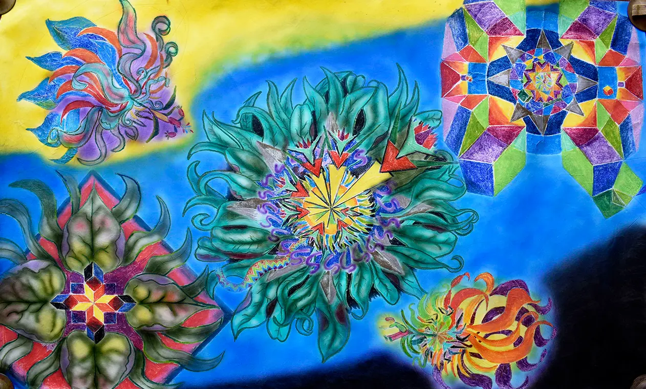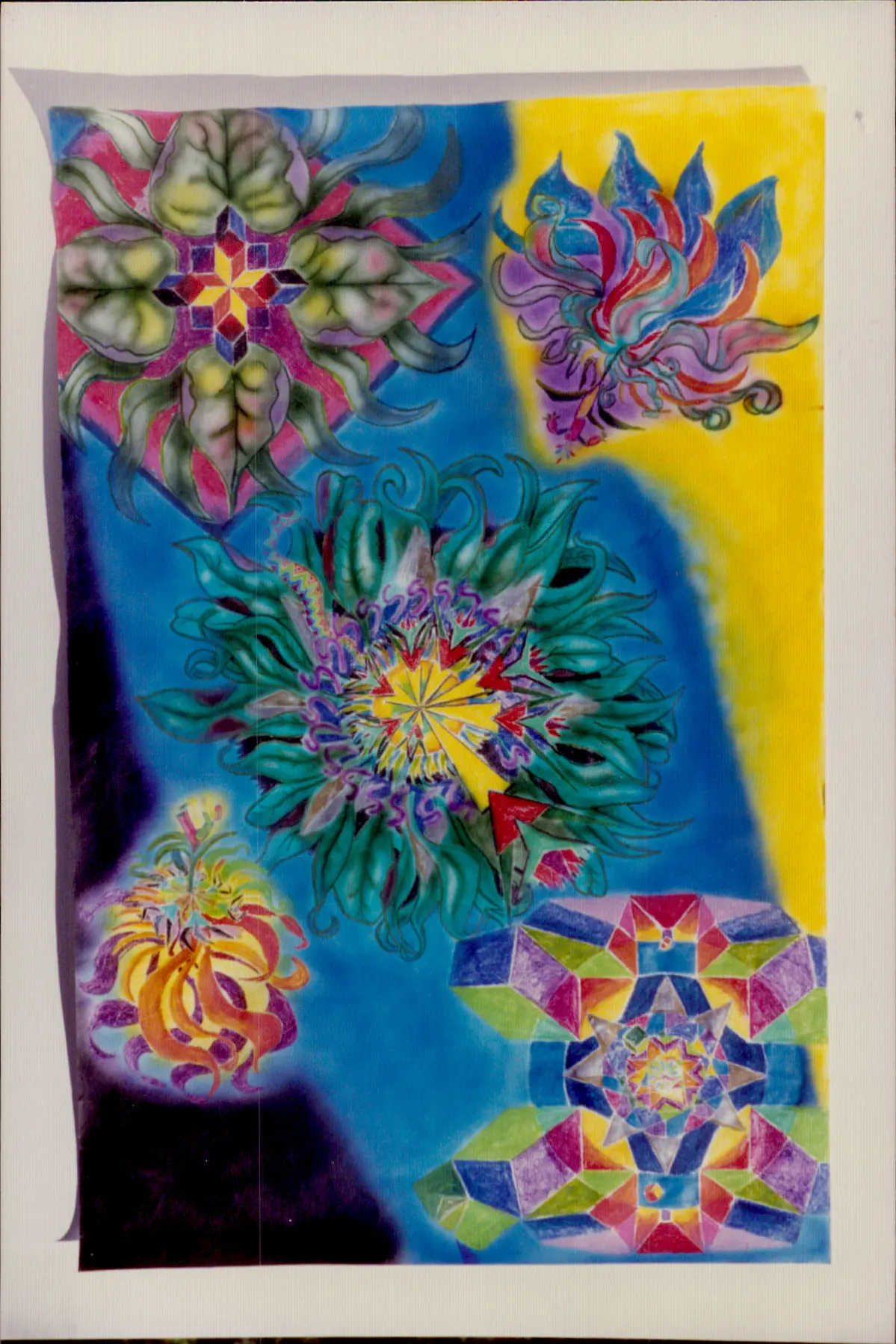 Art by Steve Bayliss "Work with an open heart" Steve worked in a number of mediums including acrylic, oil pastel, airbrush, and colored pencil. These pieces are all approximately 30″x40″ large. The pieces are much more vibrant and clear in person. Gallery